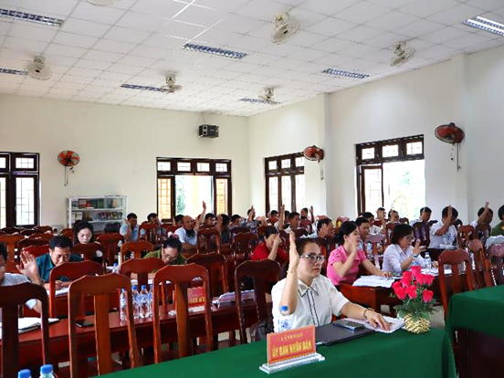 Các đại biểu HĐND xã Ba Động biểu quyết thông qua Nghị quyết