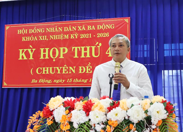 Đồng chí Đinh Xuân Hòa – Phó Bí thư Thường trực Đảng ủy, Chủ tịch HĐND xã Ba Động phát biểu bế mạc kỳ họp.